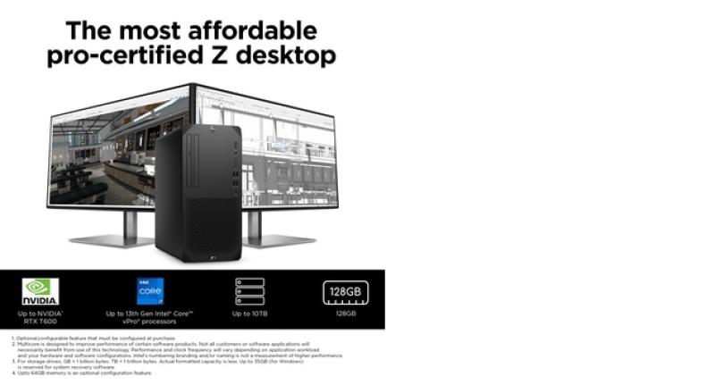 Desktop Workstation HP Z1 G9 Tower, Intel Core i7-13700 16-Core (2.1GHz, up to 5.1GHz, 24MB), video dedicat NVIDIA GeForce RTX 3060 12GB, RAM 16GB DDR5 4800MHz (1x16GB), SSD 512GB M.2 2280 PCIe NVMe , No ODD, LAN 10/100/1000, porturi: 10x USB Type-A/ 1x USB Type-C/ 2x DP 1.4/ Audio Jack/ 1x RJ-45, sloturi: 1 M.2 2230; 2 PCIe 3 x1; 1 PCIe 3 x16 (wired as x4); 2 M.2 2280; 1 PCIe 4 x16 (1 M.2 2230 slot for WLAN and 2 M.2 2280 slots for storage), HP USB 320k Keyboard, HP Wired 320M Mouse, HD audio, Sursa 550 W, Black, greutate 5.7 Kg, Microsoft Windows 11 Pro 64bit, 3yw